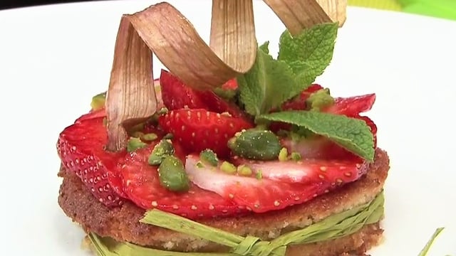 Une tartelette alliant la douceur de la fraise et de l'amande et l'acidité de la rhubarbe, pour vous offrir un dessert fort en saveur. Cette tarte aux fraises à la rhubarbe plaira à tous vos convives, sans exception !