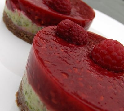 Mixer les framboises. Ajouter l'agar-agar et le sucre et faire bouillir une minute. Disposer sur la crème de pistache. Ajouter une framboise entière sur le dessus de chaque tartelette. Mettre au frais au moins une heure et démouler juste avant de servir.