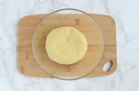 2Façonnez la pâte en boule, couvrez-la d’un film alimentaire et mettez-la au frais pendant 30 minutes.