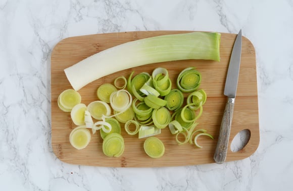 3Nettoyez les poireaux et coupez-les en rondelles.
