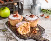 Préchauffer le four à 200 °. Dérouler la pâte feuilletée et à l'aide d'un emporte-pièce découper des cercles. Les disposer au fond des moules à tartelettes. A l'aide d'un pèle pommes, (ou d'un couteau) éplucher les pommes et les couper en spirale.