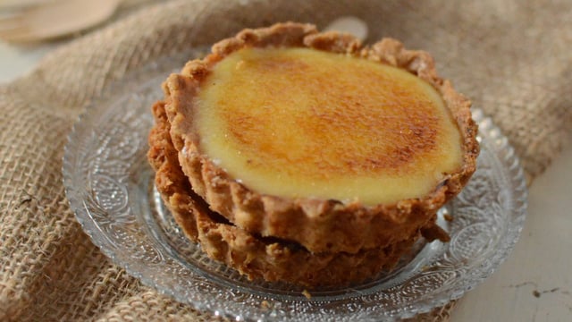 Tartelettes à la pâte sablée avec une crème au citron et une touche caramélisée au final.