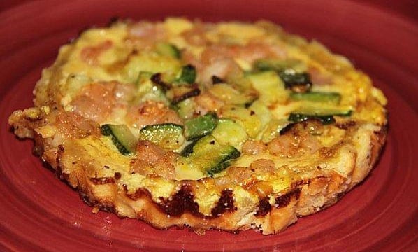 Répartir les crevettes et les dés de courgettes dans vos moules à tartelettes.