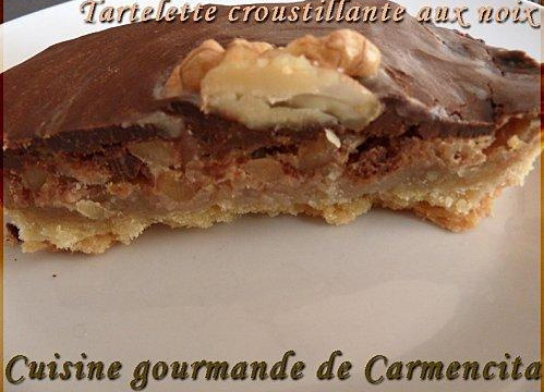 Ramollir le beurre en le fouettant fortement jusqu'à ce que vous obteniez une consistance de pommade. Ajouter le sucre pour émulsionner le mélange et toujours en fouettant, ajouter les œufs, les noix coupées très grossièrement et la cuillère de rhum. Réserver. Pendant la cuisson des tartelettes préparer la ganache. Dans une casserole couper le chocolat en morceaux, ajouter la crème fraîche et faire fondre à feux doux en remuant de temps en temps . Garnir les tartelettes de la crème aux noix et remettre au four pendant 10 min. A la sortie du four les laisser refroidir et les recouvrir de ganache au chocolat, mettre un cerneau de noix au centre et placer au réfrigérateur minimum 2 h pour que la ganache se fige.