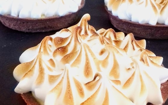 Mettre la préparation dans une poche à douille et garnir les tartelettes. Dorer la meringue avec un chalumeau de cuisine et si vous n'en avez pas, passer les tartelettes une minute dans votre four position grill.