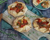 Des tartelettes individuelles aux tomates et mozzarella légères, grâce à une pâte brisée sans beurre. On les déguste en entrée ou en plat, accompagnées d'une belle salade.