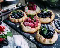 Cette fois, la tarte rustique se décline en version tartelettes. Nous avons choisi de ne pas faire les fruits avec la pâte pour garder toute leur fraicheur. La pâte est garnie d'une fausse crème d'amandes pour plus de légèreté.
