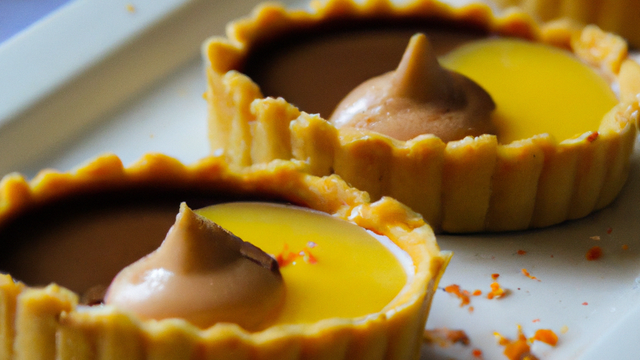 Pour la pâte sucrée : Réaliser la pâte sucrée avec 50g de beurre, 50g de sucre, 125g de farine et 1 œufs. Mélanger tous les ingrédients ensemble en incorporant le beurre en dernier. Laisser reposer la pâte en boule au réfrigérateur avant d'abaisser des disque de la taille de vos moules a tartelettes. Cuire à blanc au four à 170°C jusqu'à coloration, réserver a la sortie du four.Pour la ganache au chocolat : Faire bouillir 100g de lait avec 200g de crème et 30g de sucre, verser sur 100g de couverture de chocolat à 64%. Ajouter 20g de beurre en morceaux et mélanger à la spatule afin de bien lisser le mélange. Couler sur les fond de tartelettes précuits, réfrigérer.Pour l'appareil a soufflé : Mélanger 1 cas de cacao dans 120g de crème pâtissière nature, puis incorporer 2 blancs d'œufs montés et serrés avec 2 càc de sucre. Dresser aussitôt réalisé.Montage : Garnir les fonds de pâte sucrée précuits avec une couche de ganache. 15min avant de servir, dresser l'appareil à soufflé et passer 10min au four à 180°C.