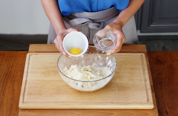 3Ajoutez l’oeuf et un petit peu d’eau.