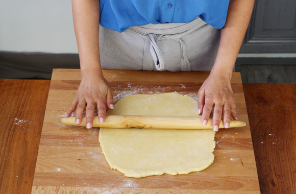 9Étalez la pâte au rouleau sur moins d’1/2 cm d’épaisseur.