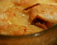 Déposer la préparation dans un plat qui passe au four coupé des tranches de reblochon de façon à recouvrir la totalité du plat puis boucher les trous avec le râpé.