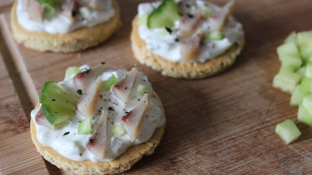 Parfaites pour un apéritif, ces petites tartines se laisseront déguster sans fin ! Une génoise légère à l"aneth, du Saint Moret mélangé à de petits morceaux de concombre et des petits morceaux de hareng... Tout est réunis pour obtenir un mélange frais et équilibré.