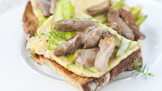 Une tartine à base d'agneau et d'asperge pour une entrée presto.