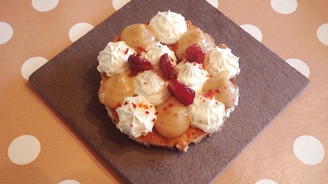 Une tartine sucrée-salée, à la crème de bleu, à la figue et aux cramberries.