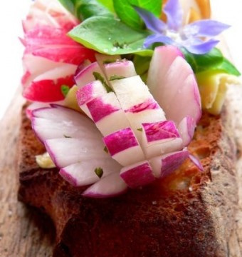 Disposez harmonieusement les radis sur les tartines.