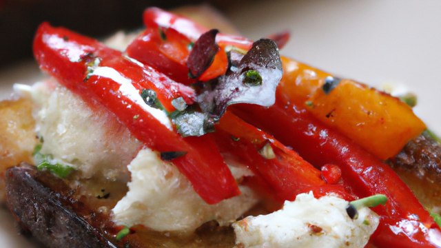 Tartine de poivrons grillés au chèvre, miel, jambon et piment d'Espelette