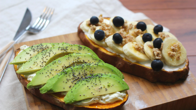 D'excellentes tartines très légères... Idéales pour déguster la patate douce autrement en version sucrée et salée.