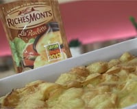 Versez-en la moitié dans le plat, étalez et couvrez avec 8 tranches de raclette Richesmonts.