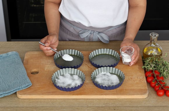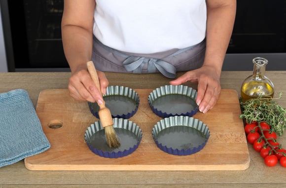 Badigeonnez 4 moules à tartelettes d'huile d'olive.