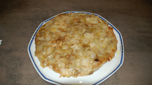 Petite tarte d'endives renversée à manger chaude ou froide.