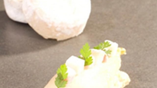 Endive farcie au Chavignol sur une fine pâte feuilletée.