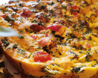 Battez vos oeufs en omelette, une fois le jus de la préparation précédente disparu les ajouter et laisser cuire en omelette.