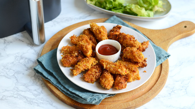 Découvrez la recette des tenders de poulet au Airfryer, une manière saine et délicieuse de préparer ce classique apprécié de tous. Grâce à la friteuse à air, vous obtiendrez des tenders croustillants à l'extérieur et tendres à l'intérieur, sans l'excès de matières grasses de la friture traditionnelle. Parfaits pour un dîner rapide, une collation gourmande ou un repas convivial entre amis, ces tenders de poulet se préparent facilement et rapidement. Servez-les avec vos sauces préférées pour un moment encore plus savoureux et régalez-vous avec cette version allégée et moderne grâce au Airfryer.
