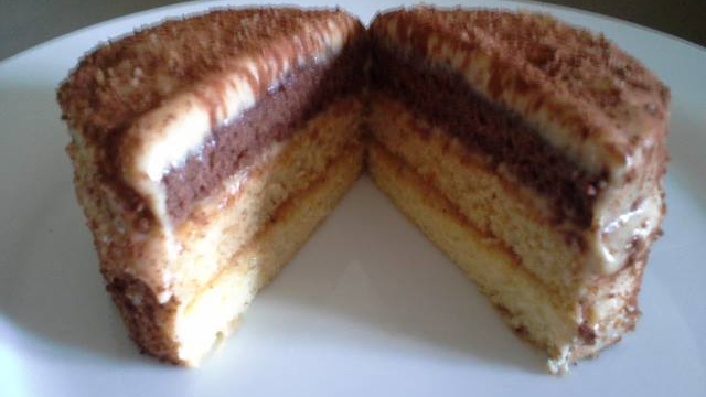 Puis faire le montage en commençant par la génoise vanille recouvrir de garniture mettre la génoise praliné recouvrir à nouveau de garniture mettre la génoise chocolat et recouvrir aussi.
