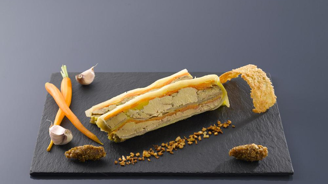Déposer une couche de foie gras. Déposer une couche de carottes. Renouveler l'opération jusqu'à hauteur de la terrine. Fermer la terrine par les feuilles de choux. Assaisonner chaque couche de sel et de poivre avec parcimonie. Cuire soit à la vapeur pendant 20 mn. Cuire au bain-marie pendant 25 à 30 mn à 160 ° C. Réserver la terrine une bonne journée avant de la couper. - 3