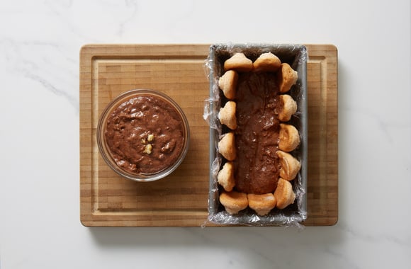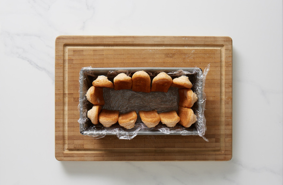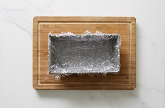 6Tapissez un moule à cake rectangulaire de film alimentaire.
