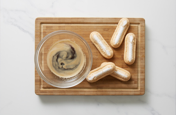 7Trempez légèrement les biscuits à la cuillère dans le café.