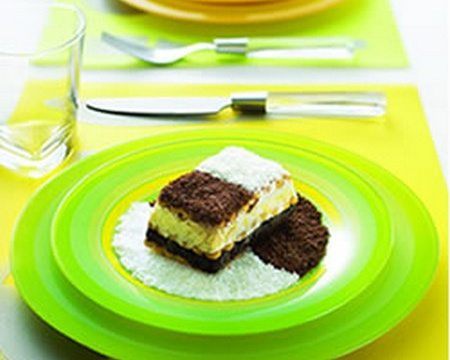Disposez une première couche de petits beurres entiers dans le fond de la terrine. Ajoutez ensuite une couche de biscuits écrasés puis une couche de préparation au chocolat blanc. Répétez l'opération avec le chocolat noir et ainsi de suite selon votre inspiration et terminez par une rangée de petits beurres entiers. - 7
