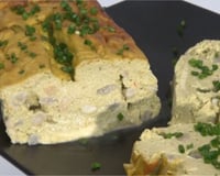 Dans un moule à cake, disposez quelques asperges entières au fond. Versez par-dessus la moitié de la préparation.