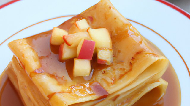 Pelez les pommes et les couper en dés. Faire un caramel dans une poêle et y verser les pommes. Bien remuer.