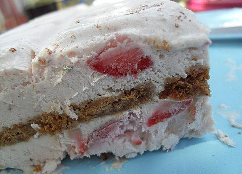 Laisser reposer 2 heures au frais, démouler délicatement la terrine. Servir accompagné d'un coulis de fraises.