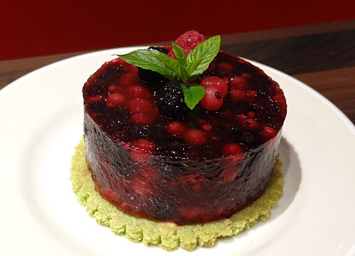 Une terrine originale pleine de parfums et à la fraîcheur douce acidulée. Les fruits rouges accompagnés du biscuit au matcha forment un duo irrésistible.