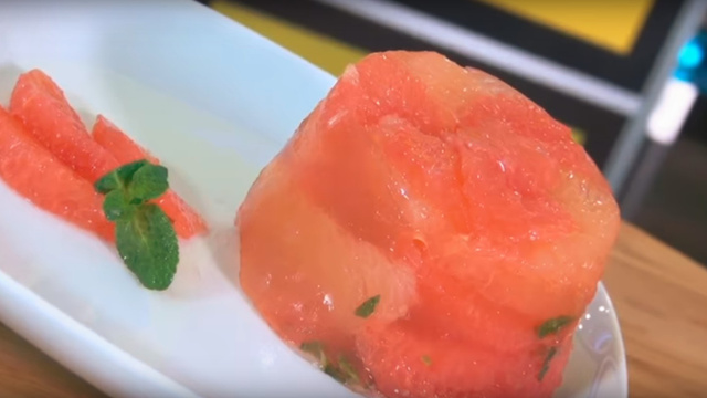 Laissez refroidir et prendre 2 heures au réfrigérateur. Démoulez les verrines et décorez avec quelques segments de pamplemousse.