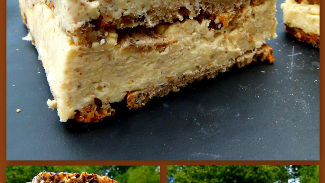 Dans un plat à cake, tapissez le fond du moule avec 1/3 du pain grillé. Étalez la préparation au bleu puis recouvrez du 2ème 1/3 de pain. Déposez par dessus la préparation au camembert et recouvrez avec le reste de pain grillé aux céréales.