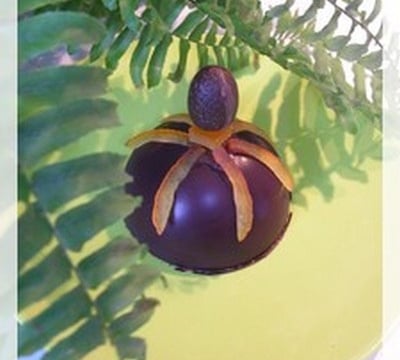 Une coque chocolatée craquante, une mousse au chocolat contenant de la marmelade d'orange et un caramel doux au beurre salé aux noix de macadamia grillées.