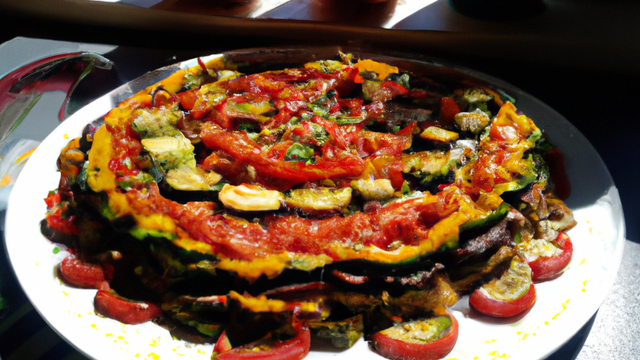 Mélange de légumes du sud en accord parfait avec de l'huile de noisette et de la mozzarella