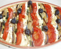 Une recette classique de tian provençal dans laquelle j'ai juste remplacé le fromage de chèvre par du Neufchâtel typiquement normand.