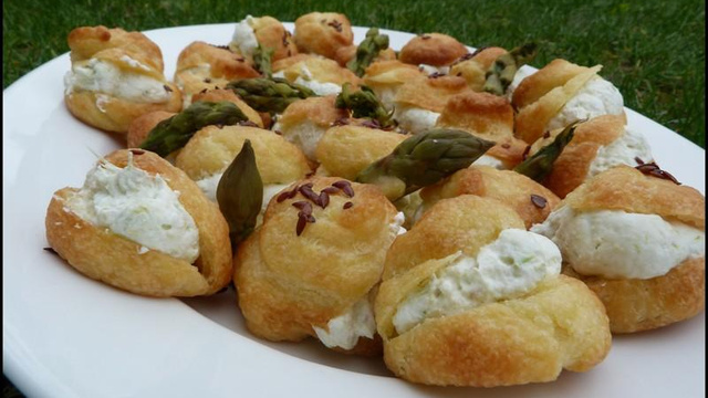 Séparer le blanc du jaune d'œuf. Mélanger le jaune d'œuf au mascarpone (ou mascarpone + chèvre) puis ajouter la purée d'asperge et rectifier l'assaisonnement. Monter le blanc d'œuf en neige ferme puis l'incorporer délicatement à la préparation précédente. - 3