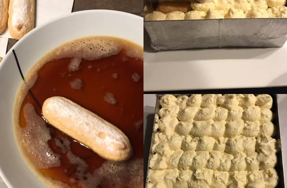 5Imbibez puis disposez en couche les autres biscuits, ajoutez le reste de crème, lissez. Mettez le dessert au minimum 4 h au frigo ( l'idéal c' est de le préparé la vieille ). Juste avant de servir, saupoudrez de cacao en poudre avec petite passoire.