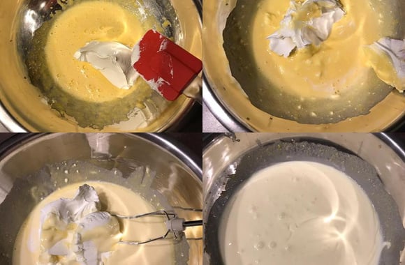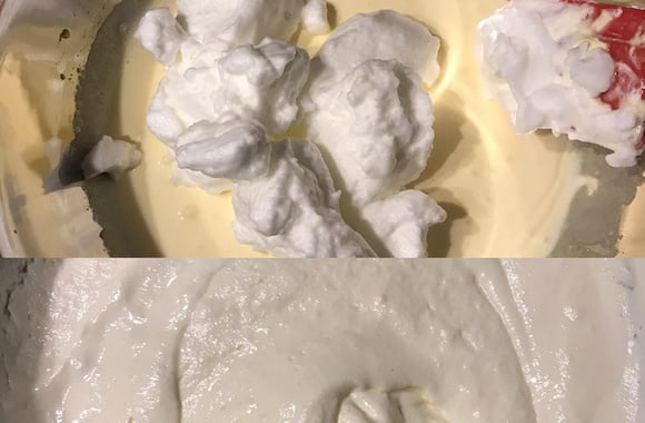 2Ajoutez le mascarpone dans la saladier, cuillère par cuillère. Battez les blancs d'œufs en neige ferme et incorporez-les délicatement au mélange.
