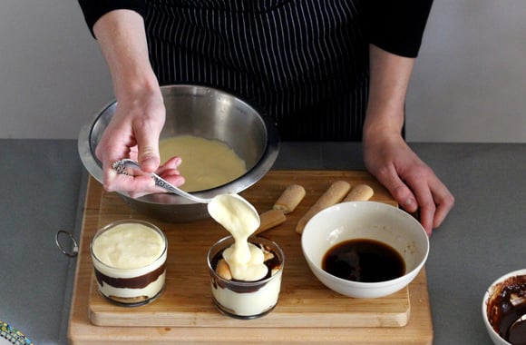 Amateurs de pâte à tartiner, vous avez toujours rêvé de goûter un tiramisu à base de cet ingrédient pas comme les autres ? Votre rêve est sur le point d'être exaucé ! Pour le réussir, vous allez avoir besoin des ingrédients traditionnels : des œufs, du mascarpone, mais aussi d'un peu de cacao. En ce qui concerne les biscuits, nous avons choisi les boudoirs. Si vous n'en avez pas, vous pouvez opter pour des spéculoos, des petits beurre ou encore des langues de chat. En ce qui concerne la décoration, si voulez amener un peu d'acidité, vous pouvez disposer quelques framboises sur le dessus de votre tiramisu à la pâte à tartiner. Dès la première bouchée, on ne peut plus s'en passer !