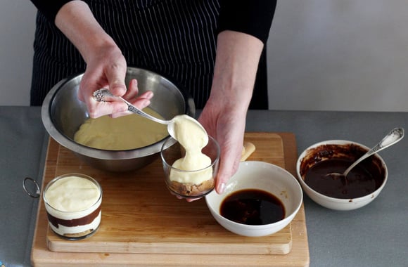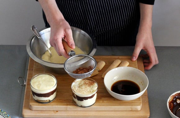 13Au moment de servir, saupoudrez chaque verrine d'un peu de cacao.