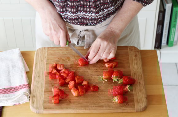 5Gardez deux fraises pour la finition, coupez le reste en dés.