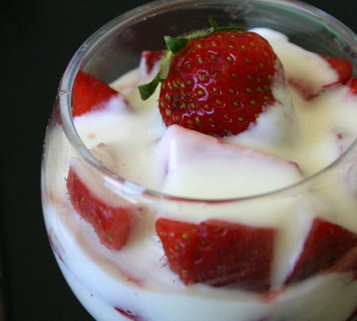 5. Faire tremper rapidement les biscuits dans le coulis de fraise, et les disposer sur le plat, verser un tiers de la crème dessus, puis des morceaux de fraises (lavées et équeutées), puis à nouveau des biscuits trempés, terminer par de la crème.