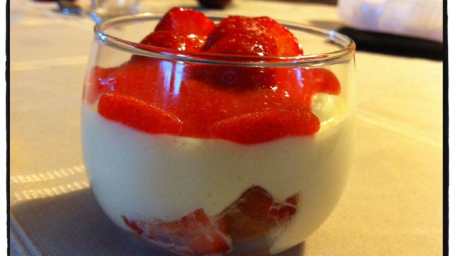 Garnissez vos verrines de ce coulis et de morceaux de fraises...