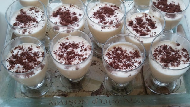 Dans des coupes de services (ou verrines), mettre 1 morceau de speculoos trempé au préalable dans du café. Recouvrir à moitié de la préparation puis remettre un morceau de spéculos trempé dans le café. Recouvrir du reste de la préparation. - 3